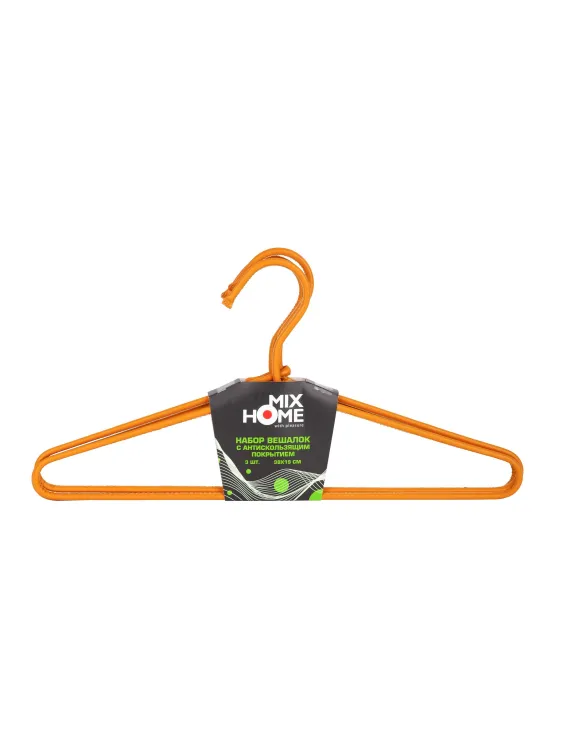Н-р вешалок металл. с антискользящим покрытием 3шт, 38х19см, цв.желтый