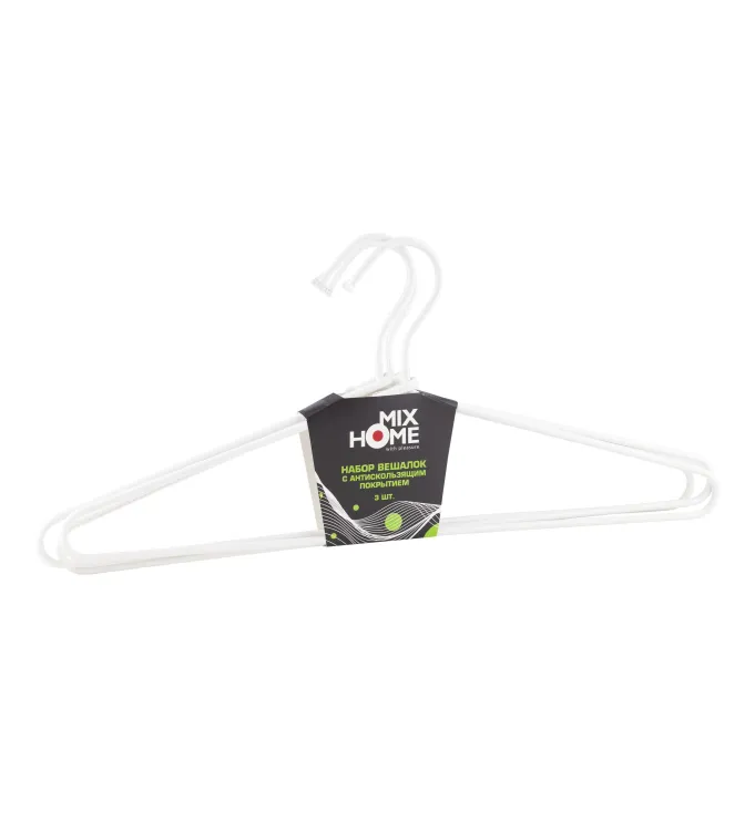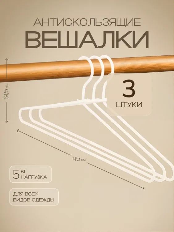 Н-р вешалок металл. с антискользящим покрытием 3шт, 45х19,5см, цв.белый