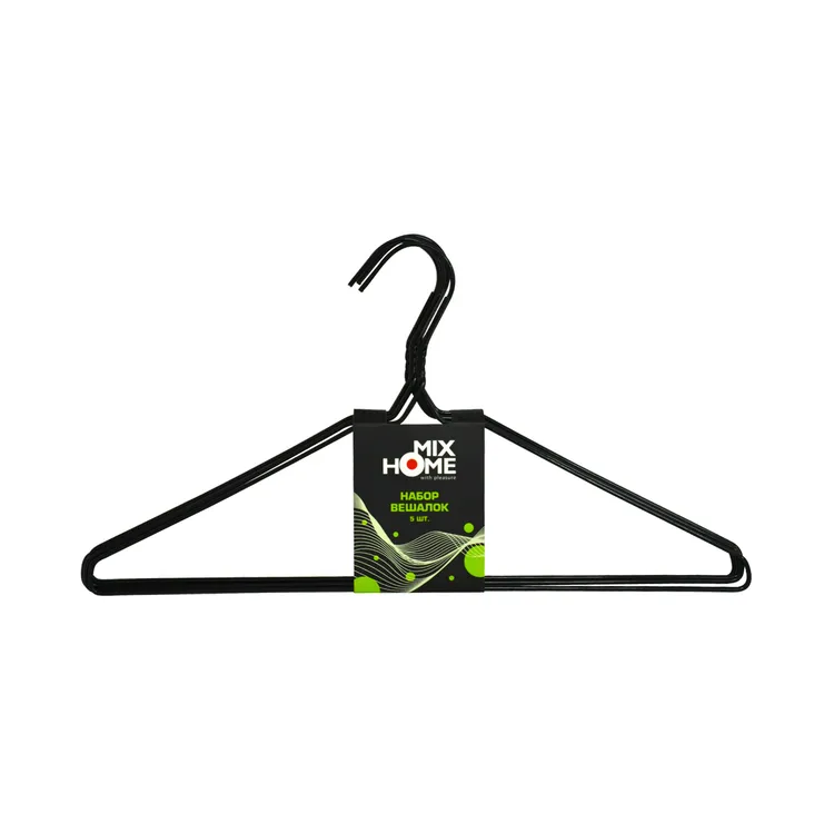 Н-р вешалок металл. с антискользящим покрытием 41х21см, 5шт., цв.черный