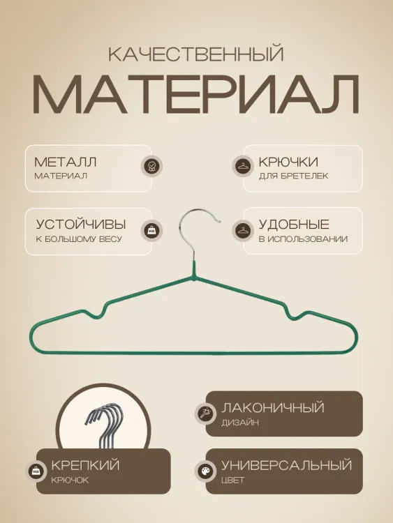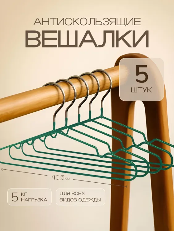 Н-р вешалок металл. с антискользящим покрытием 5шт. 40,5см, цв. зеленый