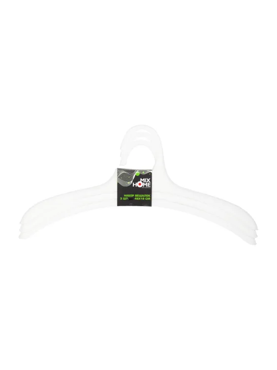 Н-р вешалок пластик. 46х19см, 3шт., цв.белый