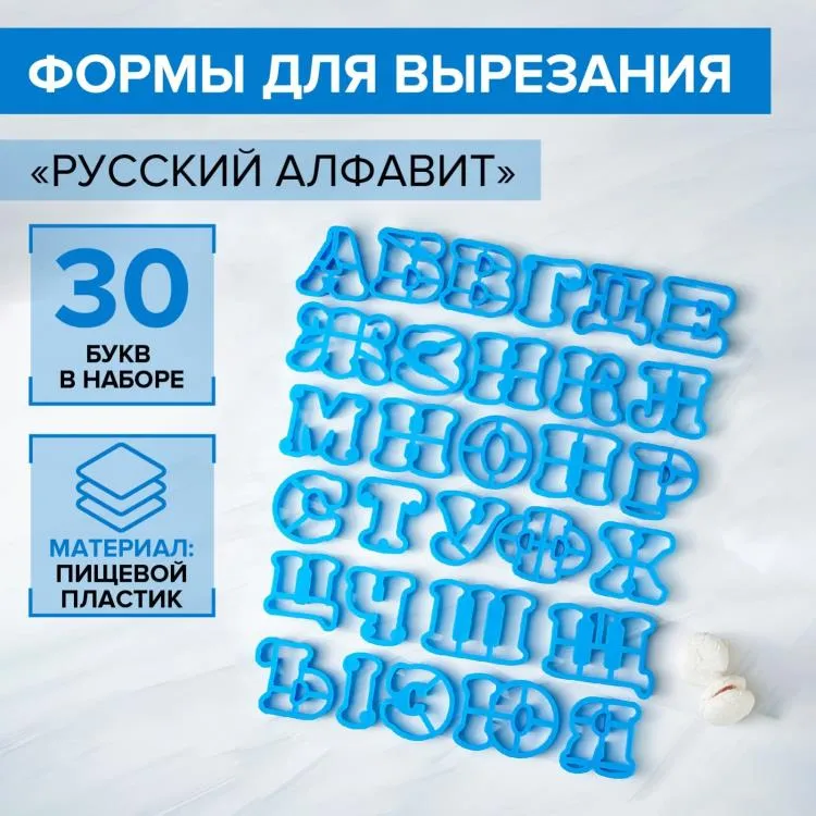 Набор формочек для выпечки "Русский алфавит" 30шт., цв.голубой