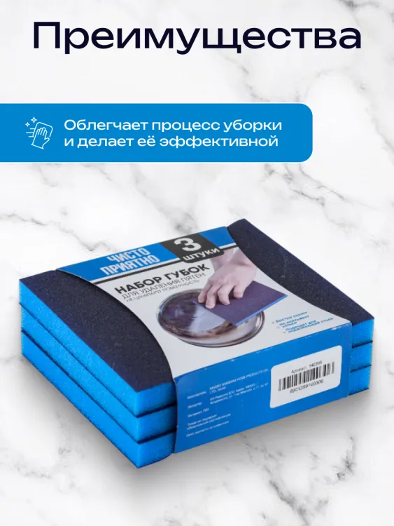 Набор губок для уборки – незаменимый помощник в вашем доме или офисе. Многофункциональные и эффективные, они подходят для использования на кухне и в ванной комнате, обеспечивая безупречную чистоту и гигиену в любом помещении. Губки оснащены абразивным слоем, который справляется с самыми сложными загрязнениями, такими как налет от воды и нагар на нержавеющей посуде.