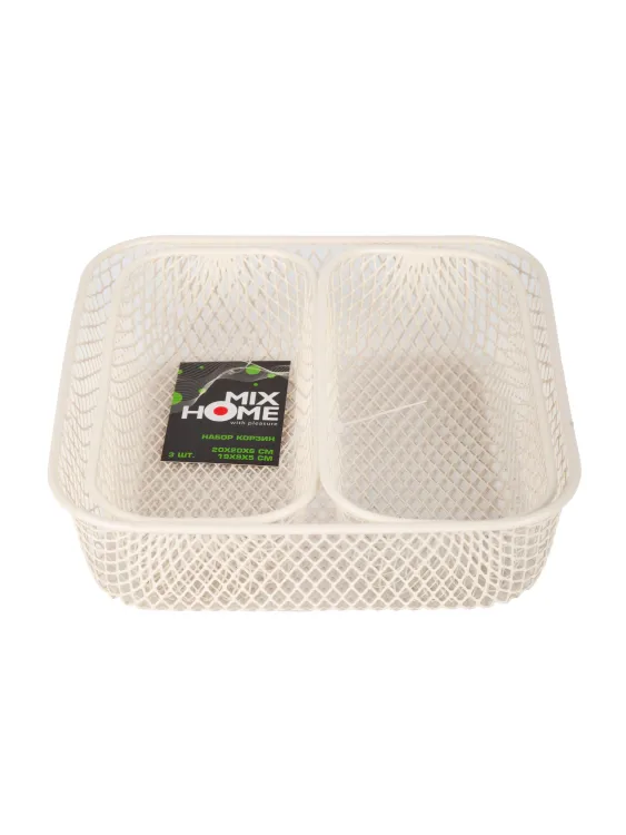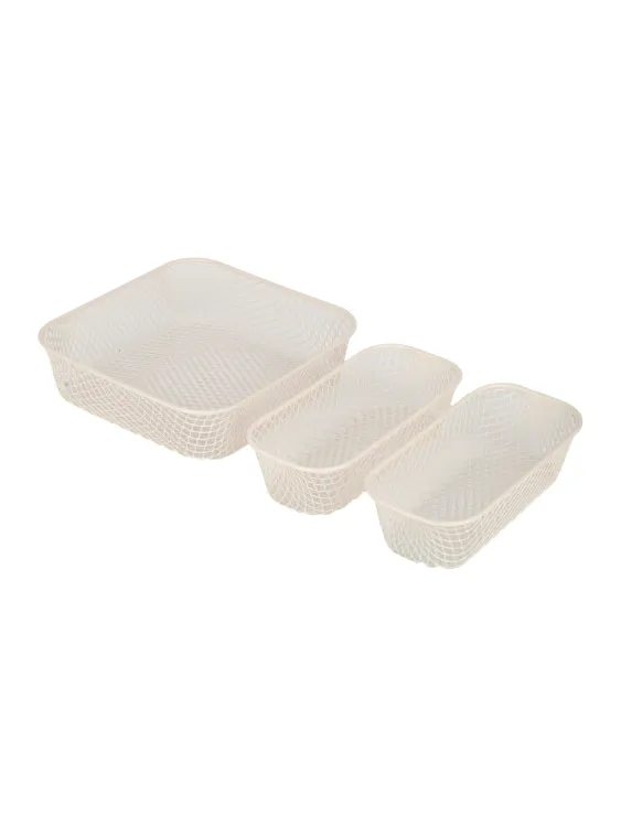 Набор органайзеров для хранения металл. 3шт. 20х20х6см; 19х9х5см, цв.молочный