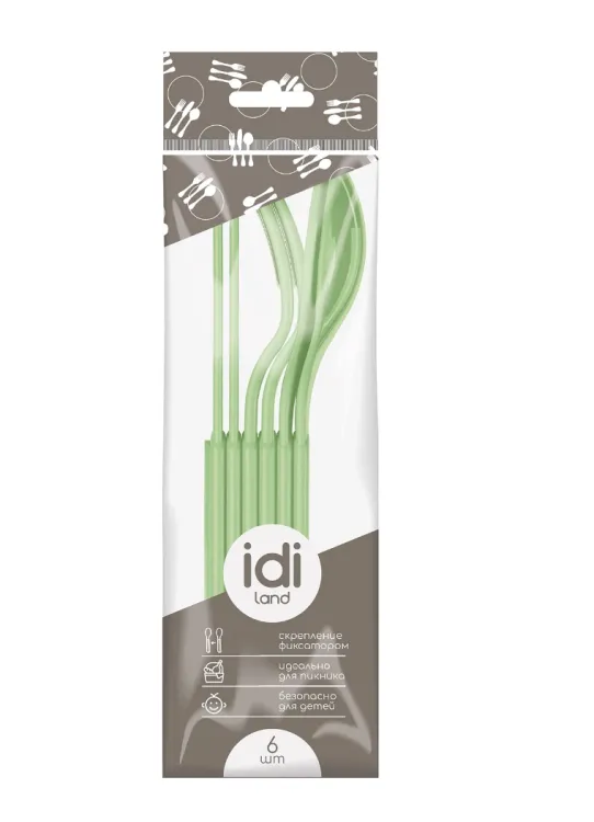 Набор приборов для пикника, пластик, 3перс., 6пр. цв.зеленый