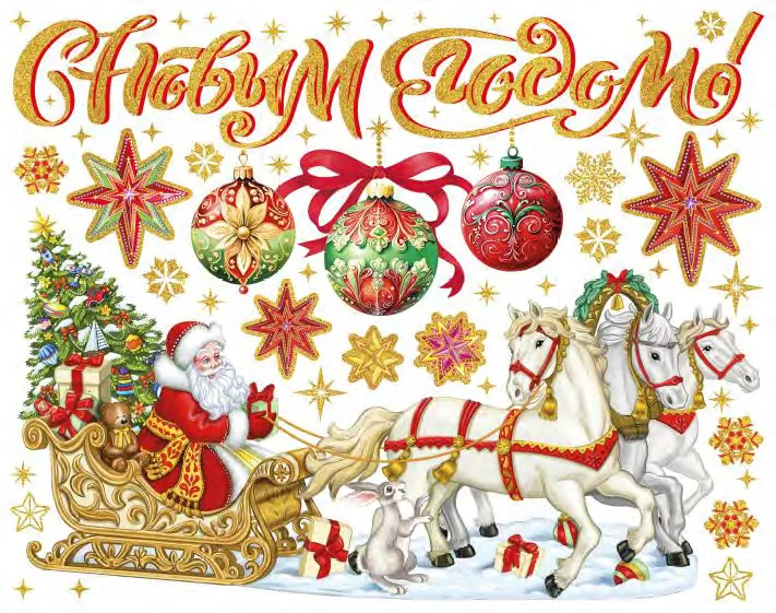 Наклейка для интер."Дед Мороз на санях" 30х38см