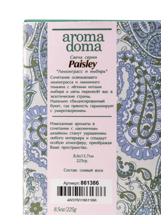 "Paisley" Свеча "Лемонграсс и имбирь" 8,6х8,6х13,7см