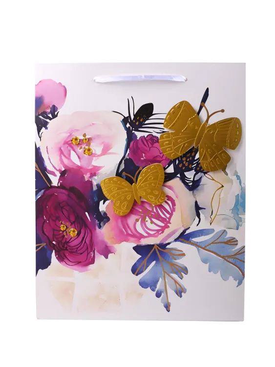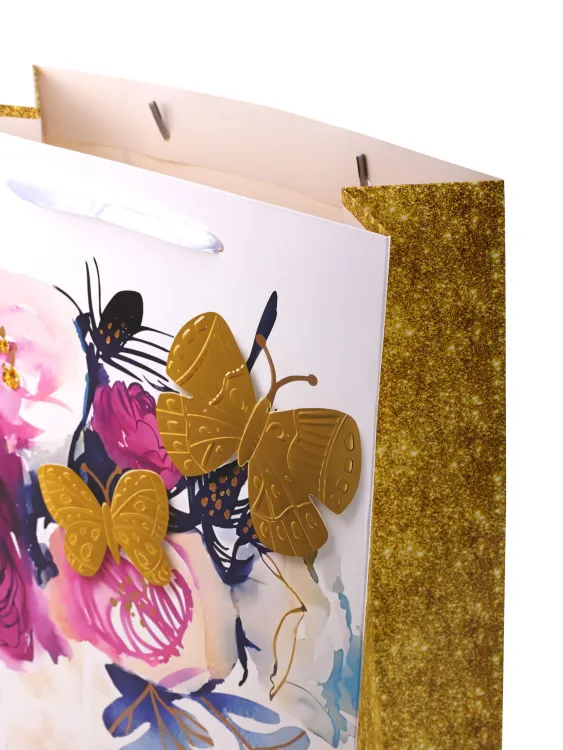 Пакет бумажный "Бабочки-цветочки" 32х26х12см