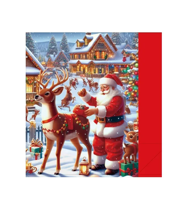 Пакет бумажный "Дед Мороз с оленем" 23х18х10см