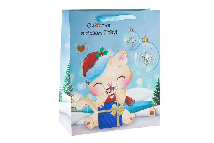 Пакет бумажный "Счастья в Новом Году" 32х26х12см