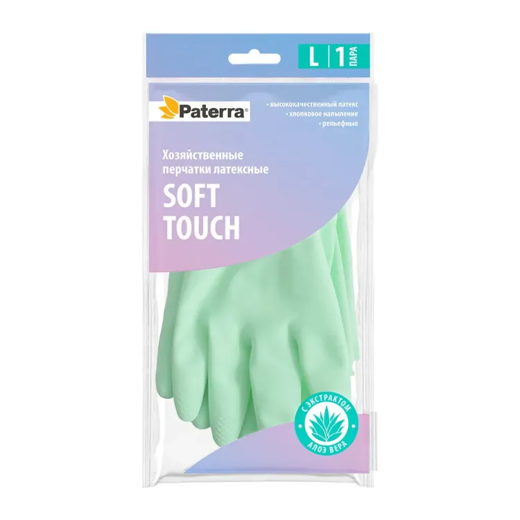 "PATERRA" Перчатки хозяйственные "Soft Touch" с экстрактом алоэ размер L, цв.зеленый