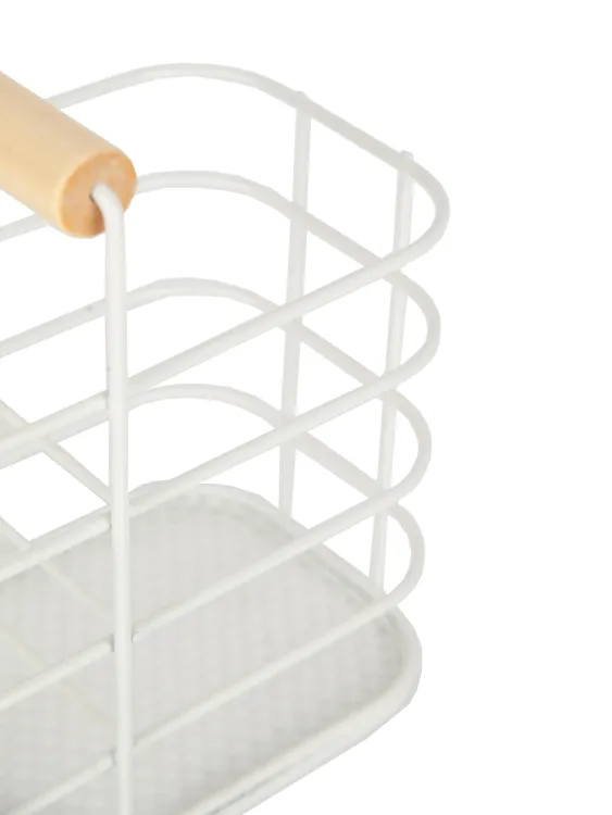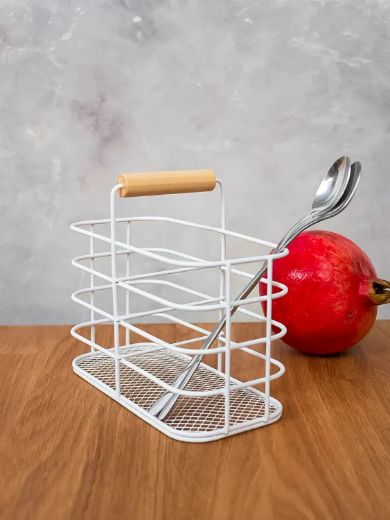 Изящная и функциональная металлическая подставка с деревянной ручкой для столовых приборов — это настольный органайзер, который станет незаменимым элементом на вашей кухне. Ее белоснежный цвет придает изысканность и подчеркивает современный дизайн интерьера, а прочная конструкция обеспечивает долговечность и устойчивость.