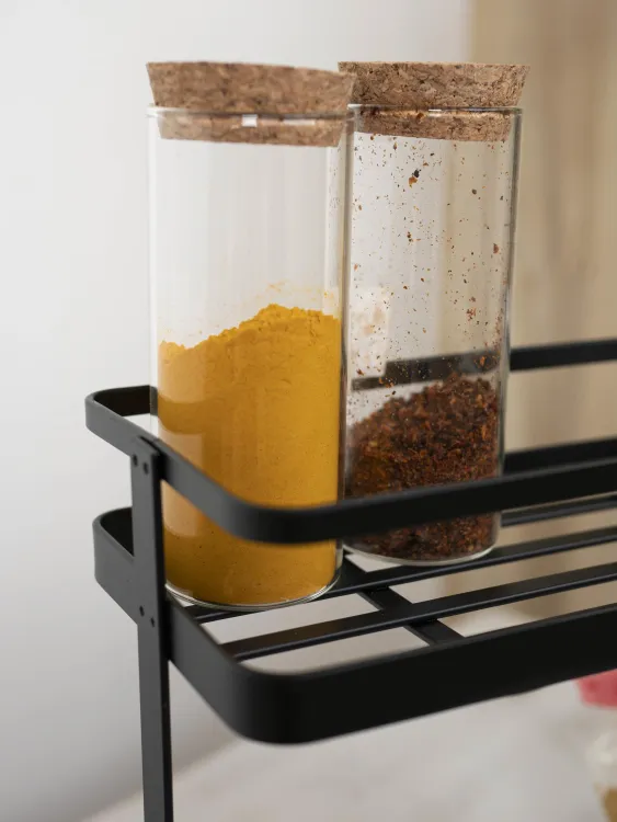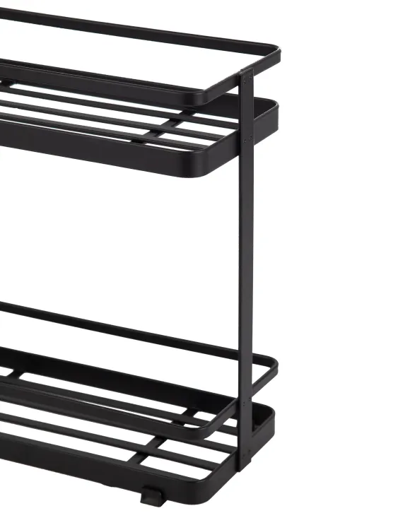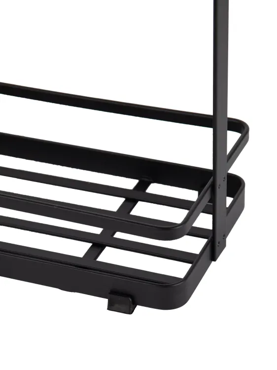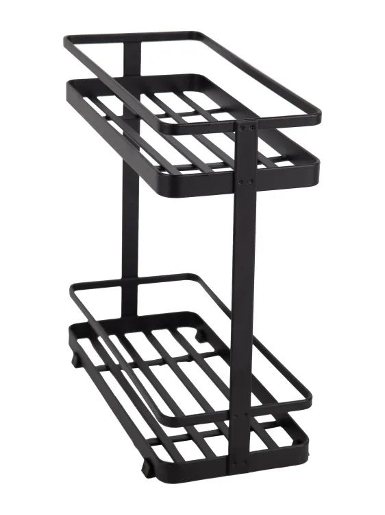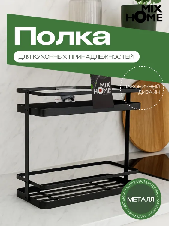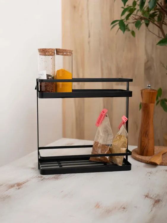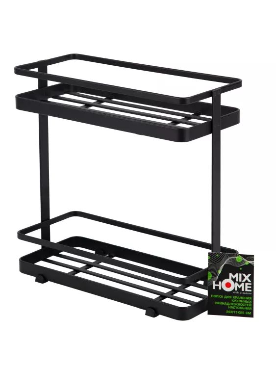 Настольная полка для хранения — современное и универсальное решение для организации вашего пространства. Эта металлическая полка прекрасно подойдет для размещения кухонных принадлежностей, включая баночки со специями и кружки. Она выполнена в стильном черном цвете и станет изысканным дополнением к любому интерьеру.