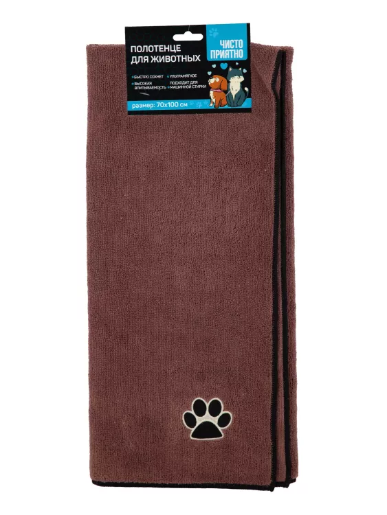 Полотенце для животных 70х100см из микрофибры, цв.коричневый