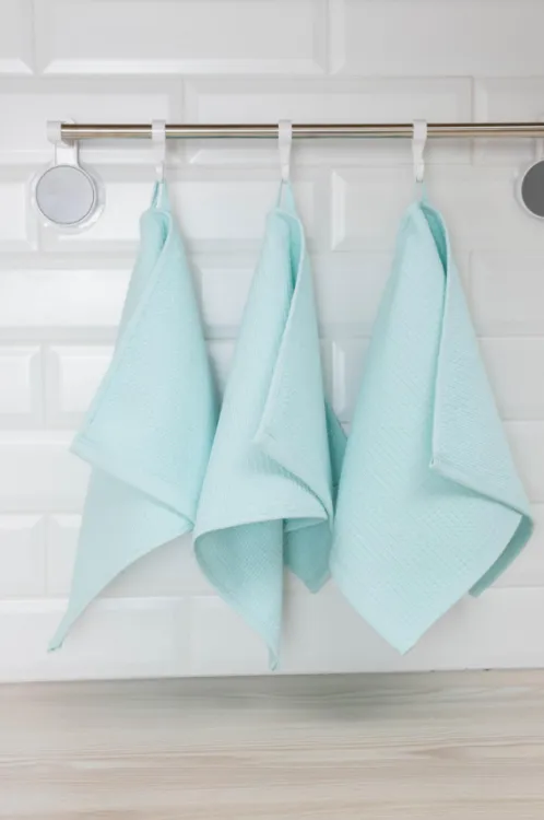 1 сторона – вафля, 2 сторона – махра. Плотность 450 г/кв.м. Петелька в цвет изделия.