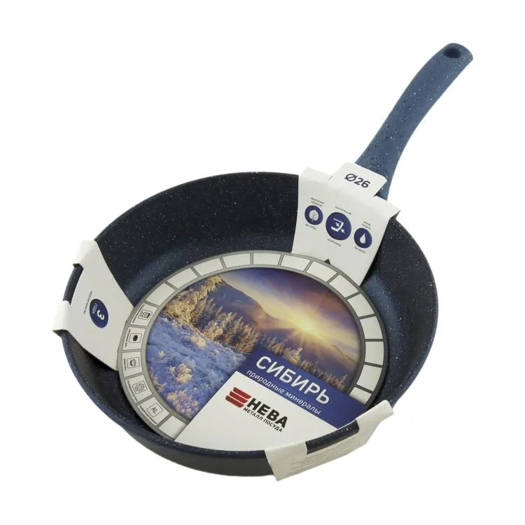 Дизайн линии сковород «Сибирь» вдохновлен красотой природных минералов и выполнен в стиле «Сибирские морозы», итальянская ручка с покрытием «Soft-touch» имитирует эффект вьюги ранним утром. Необычное дизайнерское решение будет непременно вдохновлять вас на кулинарные эксперименты!