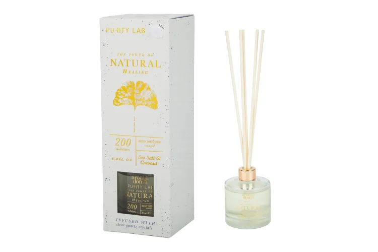 Аромадиффузор с кристаллами горного хрусталя внутри флакона — изысканный элемент декора, который создаст атмосферу уюта и расслабления в вашем доме, офисе или салоне. В комплект входят фибровые палочки, обеспечивающие равномерное распределение аромата и стойкость, которая будет радовать вас долго. Для поддержания аромата рекомендуется переворачивать палочки каждые 2 недели.