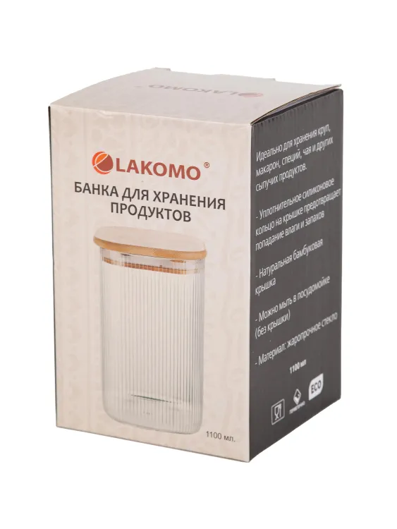 "Rib" Банка для хранения дерев. крышка 1100мл, квадратная, рифленая в п.у.