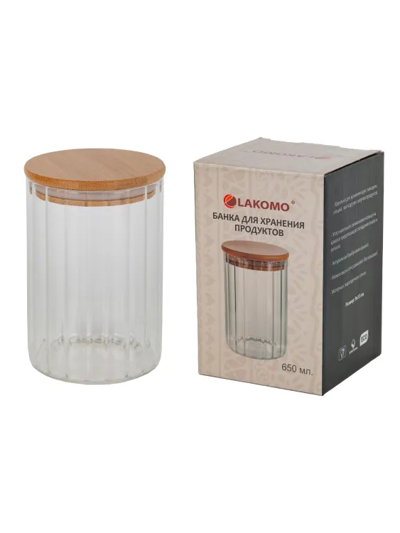 "Rib" Банка для хранения дерев. крышка 650мл, h=13см, рифленая в п.у.