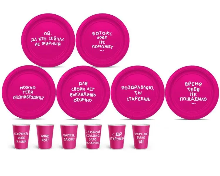 "С ДР, старушка" Набор бум.стаканов 6шт. 250мл
