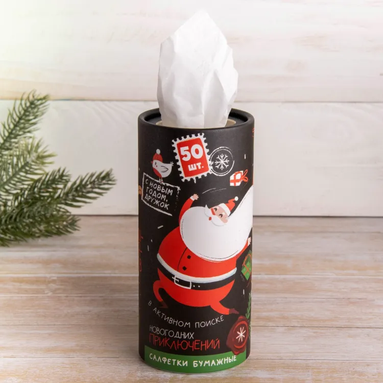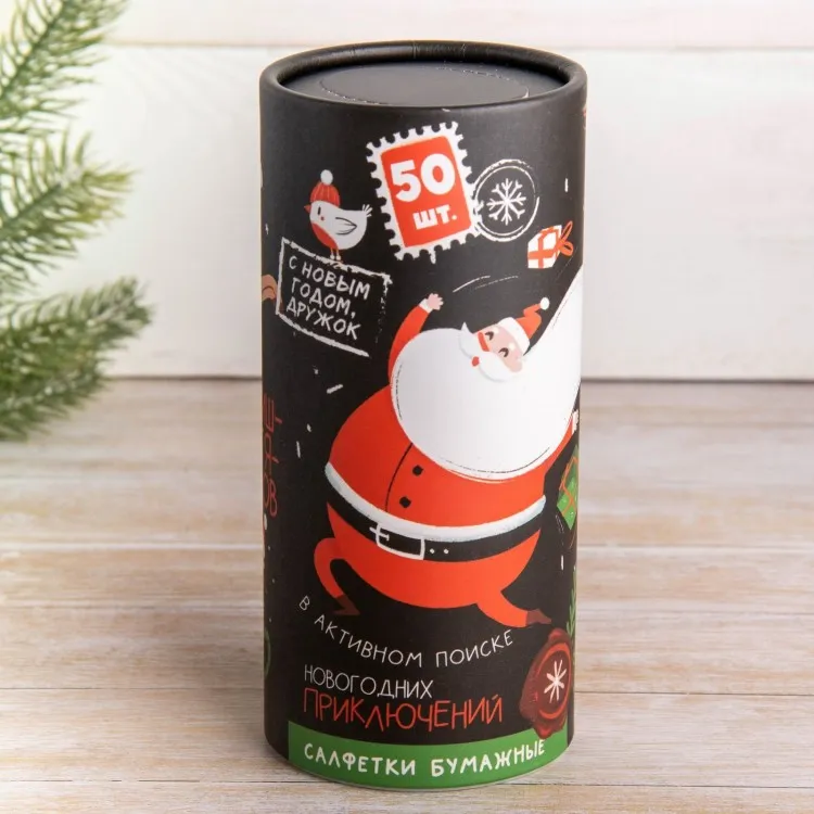 Салфетки бумажные двухслойные в тубусе "Новый год! В поиске приключений" 50шт.
