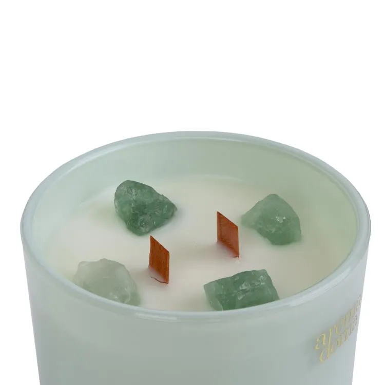 Свеча из соевого воска с двумя деревянными фитилями, создающими эффект потрескивания, является идеальным выбором для создания уютной и романтической атмосферы. В состав свечи входят кристаллы авантюрина, которые усиливают интуицию, восприятие, устраняют страх и настраивают на позитив.