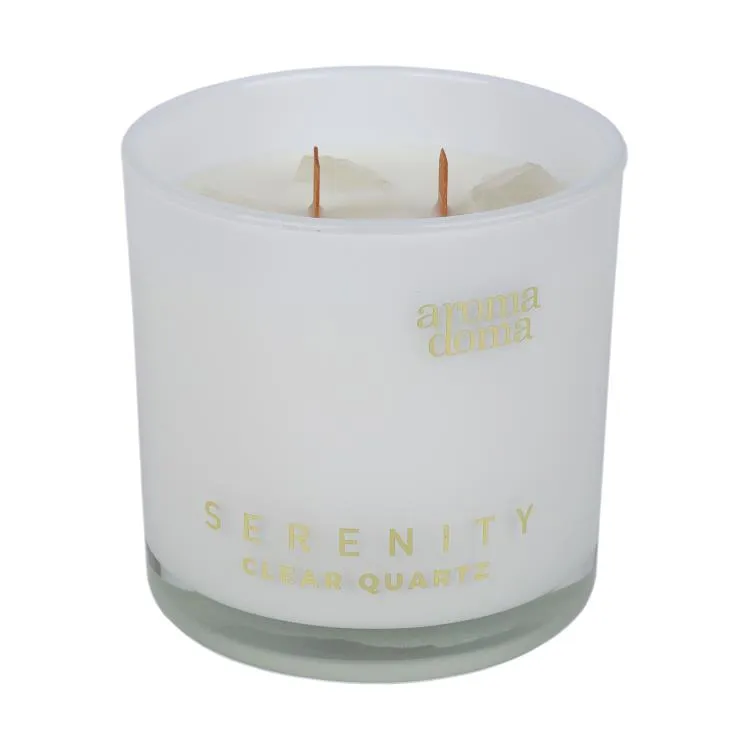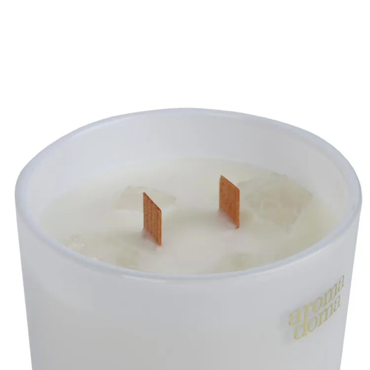 Изящная свеча, изготовленная из соевого воска, станет прекрасным дополнением вашего дома. С двумя деревянными фитилями, создающими эффект потрескивания, свеча подарит ощущение уюта и тепла. Кристаллы горного хрусталя внутри свечи усиливают энергию и проясняют мысли, что делает её идеальной для медитации и ароматерапии.