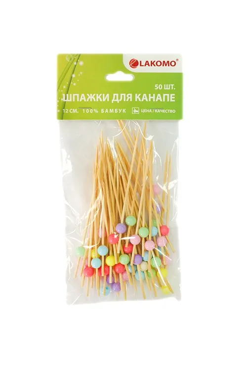 Шпажки для канапе "Радужные шарики" бамбук, 50шт. 12см
