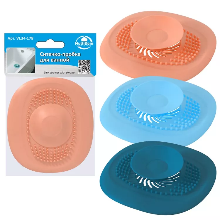 Ситечко-пробка для ванны 11х10см 3цв.