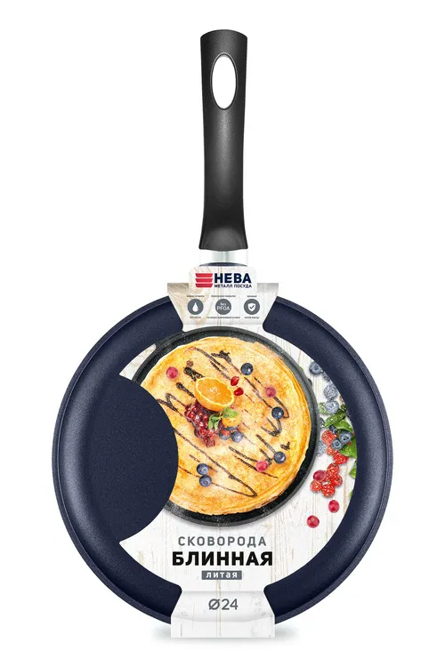 Сковорода блинная литая с АПП 24см, цв.синий
