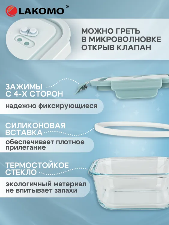 Ланч-бокс "Color classic" 1л со столовыми приборами, 21х15х8см, цв.зеленый N343-02