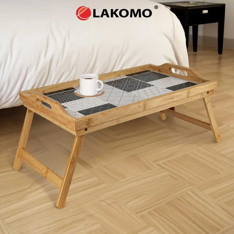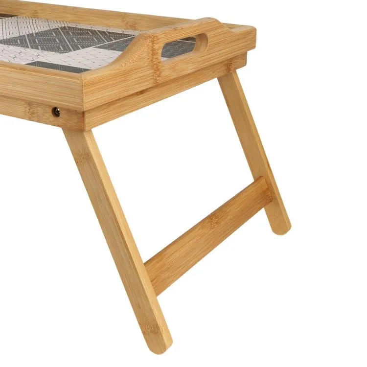 Бамбуковый столик в постель с принтом — это многофункциональный аксессуар, который идеально подходит для завтрака, работы с ноутбуком или чтения. Столик выполнен из прочного бамбука, что гарантирует его долговечность и легкость. Складная конструкция позволяет удобно хранить и переносить столик, делая его портативным и практичным.