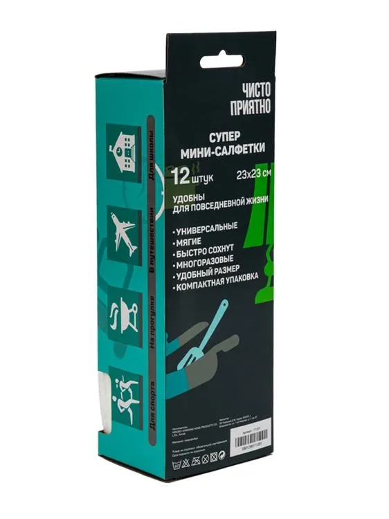 Тряпки из микрофибры быстро сохнут, что делает их идеальными для многоразового использования. Они долговечны и износостойки, выдерживая многочисленные циклы стирки и сохраняя свои свойства. Компактный размер салфеток позволяет использовать их для уборки труднодоступных мест и мелких поверхностей, обеспечивая безупречную чистоту.