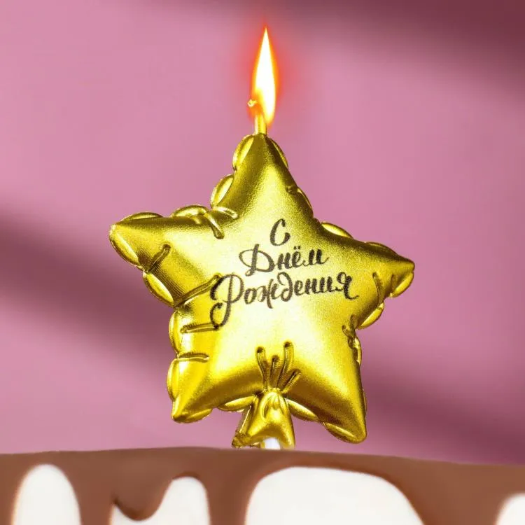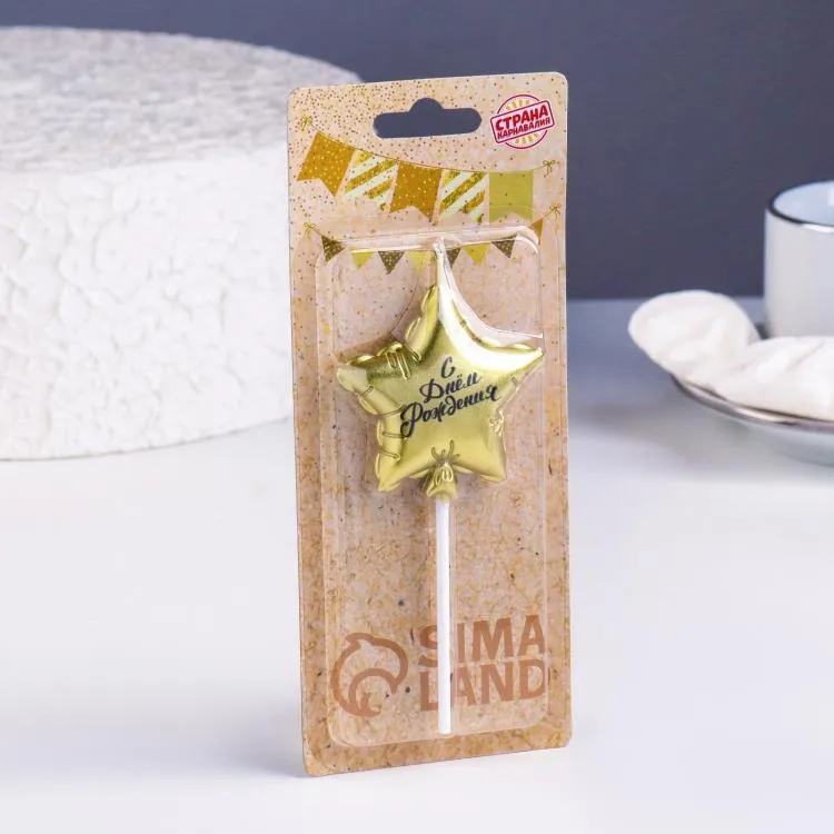 Свеча для торта "Воздушный шарик. Звезда" 5,5см, цв.золотой