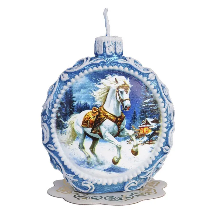 Свеча-шар "Лошадка на скаку" 7,2х3,8х8,5см, цв.голубой