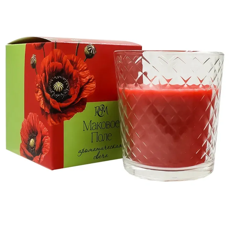 Свеча в стекле "Маковое поле" 30ч 8,4х7,8см