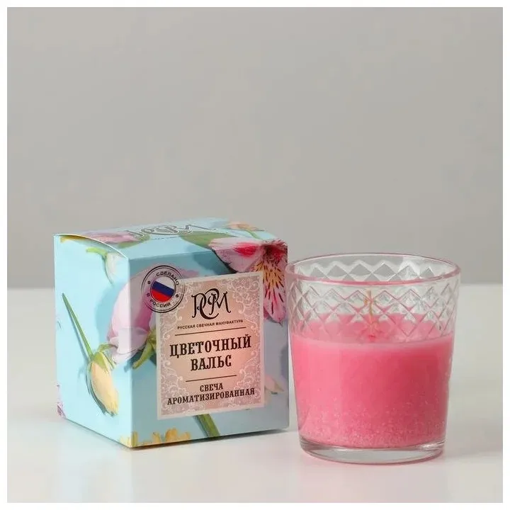 Свеча в стекле "Цветочный вальс" 30ч 8,4х7,8см