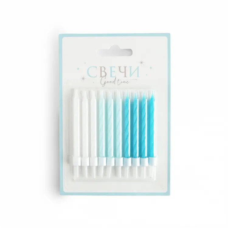 Свечи для торта "Праздничные" 10шт, цв.голубой
