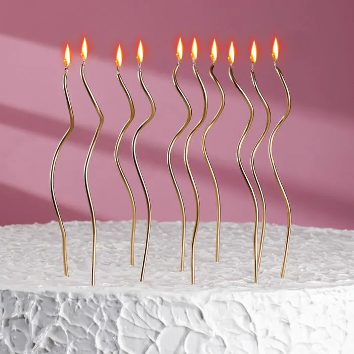 Свечи для торта "Серпантин" 10шт, цв.золотой