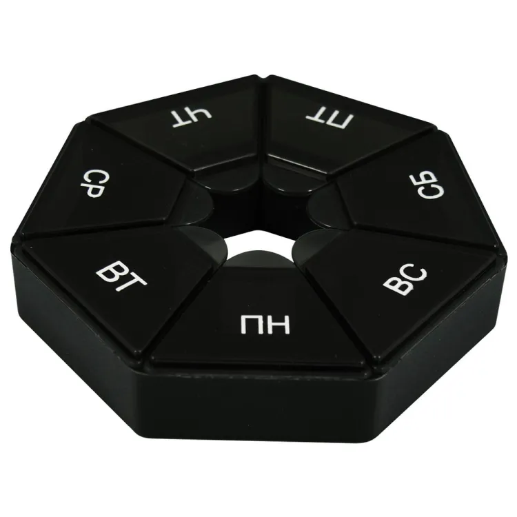 Таблетница "Неделя" 7 секций, 8х8см, цв.черный