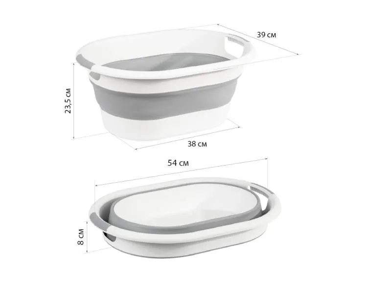 Таз овальный складной "Флекс" 25л 54х39х8см, цв.серый