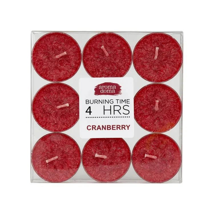 Набор свечей-таблеток (9 шт.) из соевого воска с пряным и сладким ароматом клюквы станет идеальным дополнением для создания уютной и романтичной атмосферы. Каждая свеча обеспечивает долгое и равномерное горение, наполняя пространство насыщенным ароматом, который выгорает полностью и не коптит.
