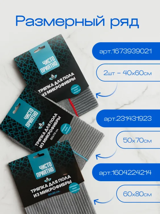 Тряпка для пола из микрофибры — идеальный выбор для эффективной уборки в вашем доме, офисе или автомобиле. Эти универсальные тряпки подходят как для сухой, так и для влажной уборки, обеспечивая отличные результаты на всех типах поверхностей. Плотные и мягкие, они быстро впитывают влагу, удаляют пыль и пятна, не оставляя ворса и разводов.