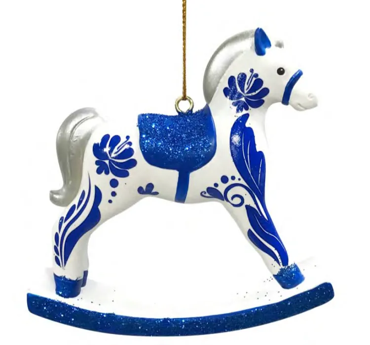 Украшение декоративное подвесное "Лошадка-качалка" 3x8,5x8,5см, цв.синий