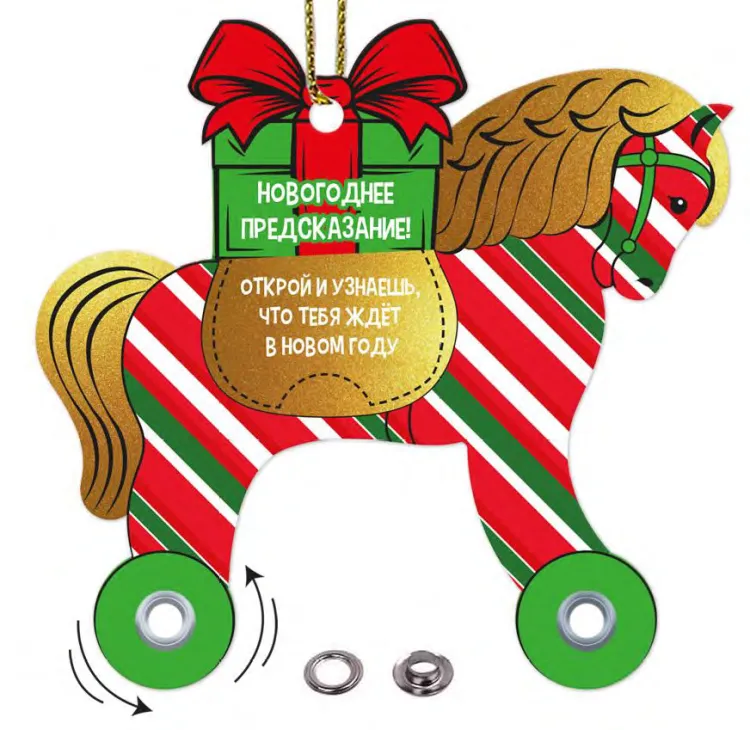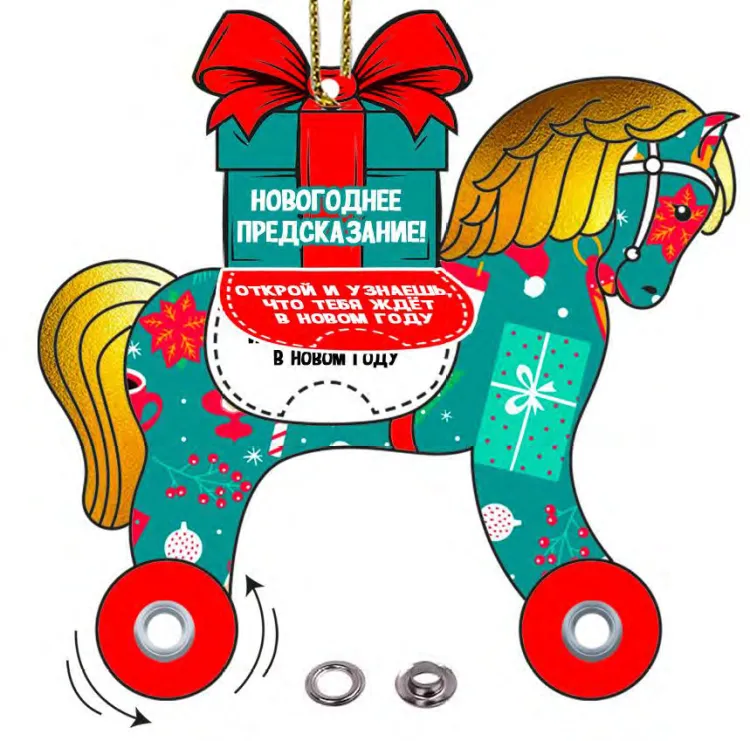 Украшение подвесное "Лошадка с подарком" с предсказанием 10х9,6см
