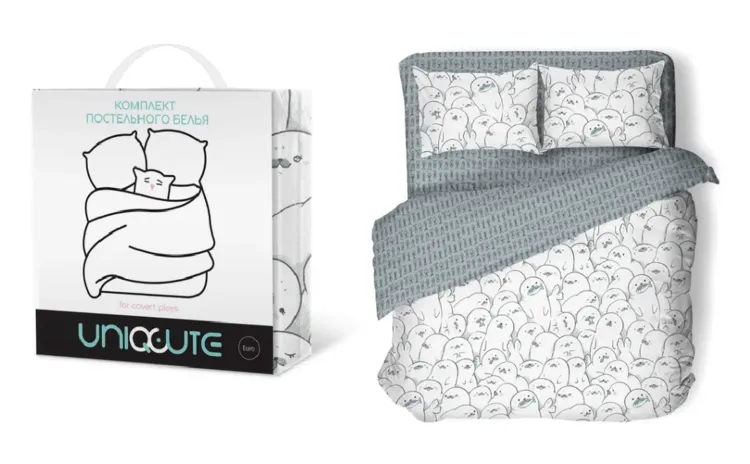 "Uniqcute" Комплект постельного белья "Морские котики" 1,5сп, 50х70см, поплин