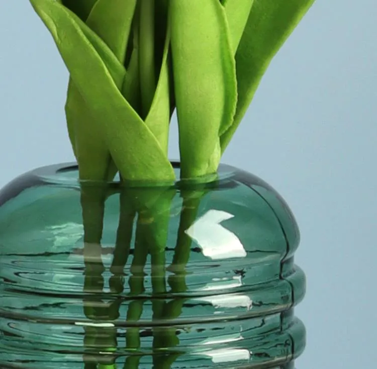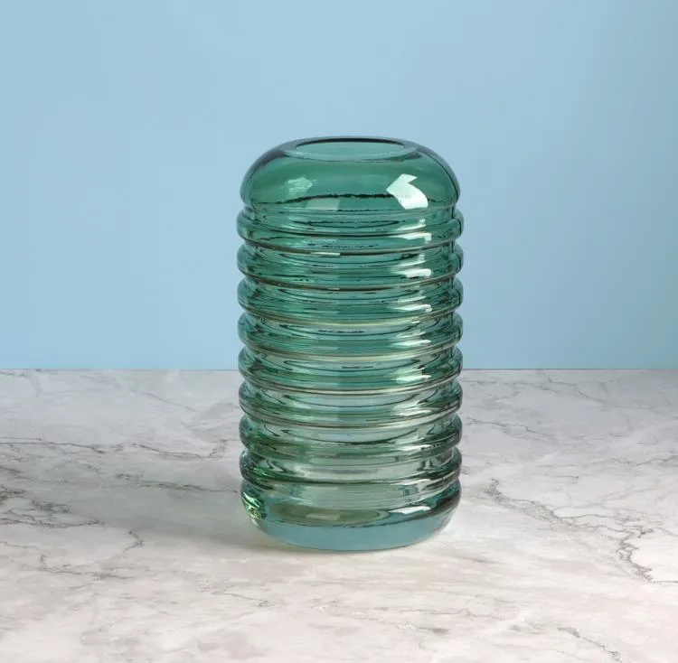 Великолепная эксклюзивная стеклянная ваза с витой текстурой отличный вариант для композиций с небольшими букетами. Современная и оригинальная, её прозрачное зеленое стекло привносит свежесть и изящество в интерьер любого помещения — будь то уютный дом, стильный офис или кафе.