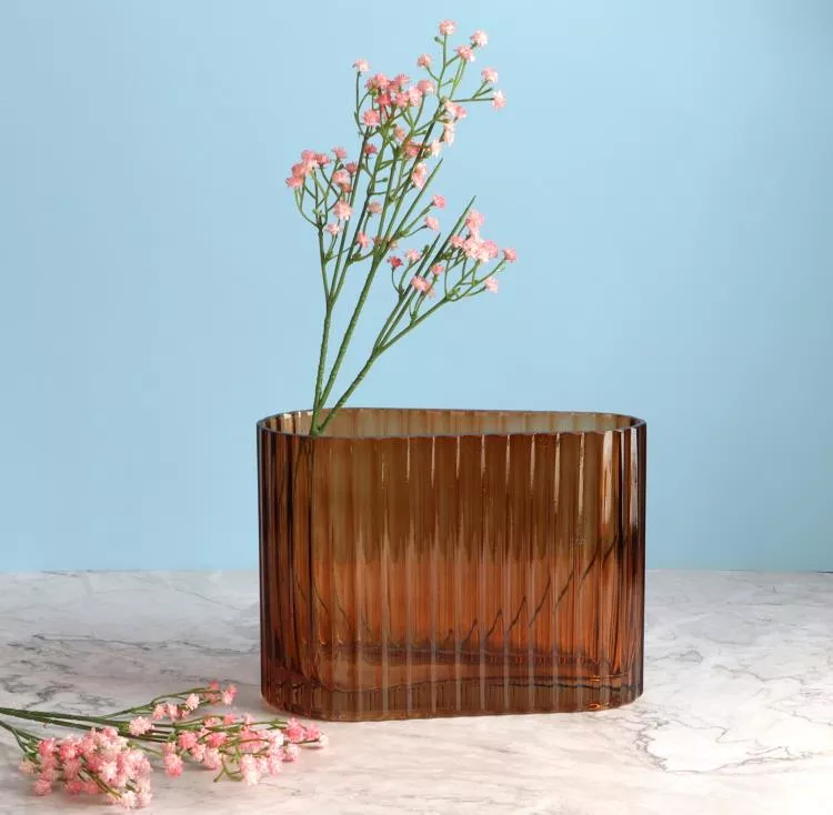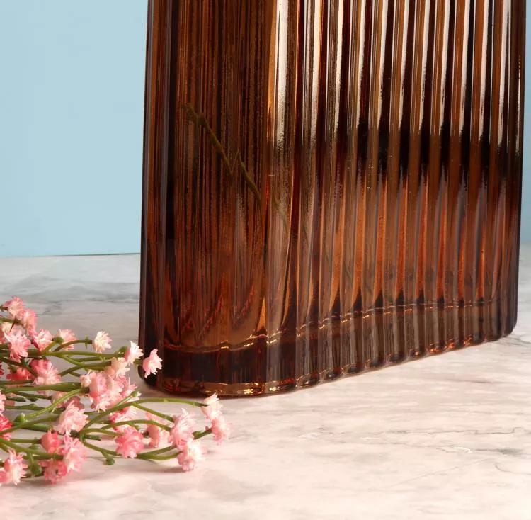 Откройте для себя неповторимый шарм оригинальной стеклянной вазы, окрашенной в тёплые коричневые тона кардамона. Эта прозрачная красавица с необычной формой - настоящее украшение для дома, офиса или любого заведения.