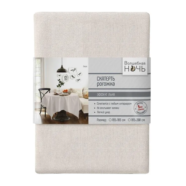 Рогожка без труда пропускает воздух, они отлично впитывает влагу и выводит ее наружу. Материал неприхотлив в уходе, не требует специального режима стирки, быстро сохнет и легко гладится. Он почти не мнется и отличается высокой износостойкостью. Скатерть из рогожки привнесет в любое помещение особую атмосферу, сделает столовую и кухню более теплыми и уютными. Текстиль выполнен в размере 165х200 см и подойдет для стандартных столов.