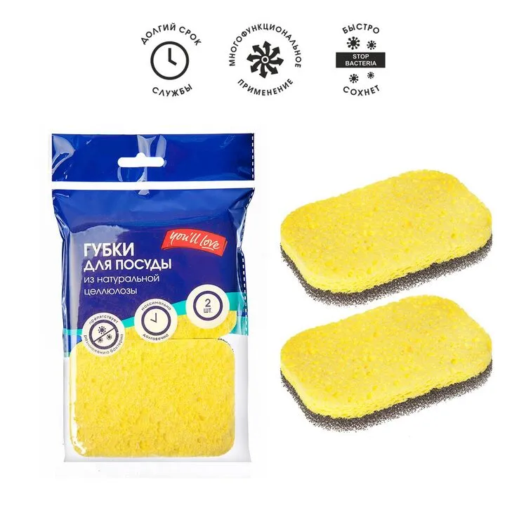 "You'll love" Набор губок для посуды целлюлозных 2шт, 10,5х7,5х2см